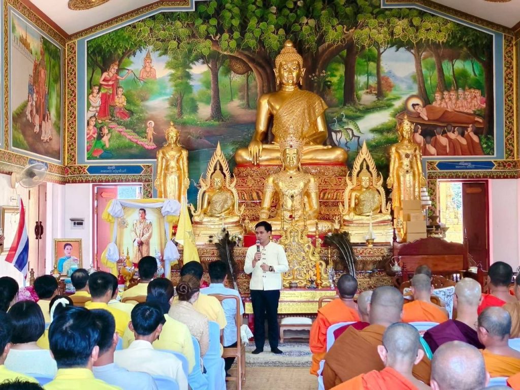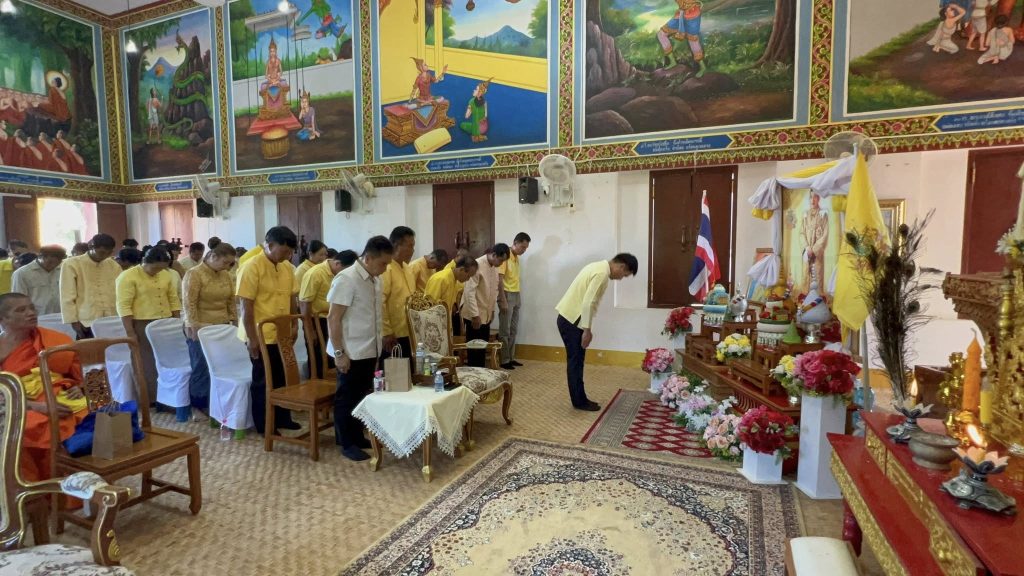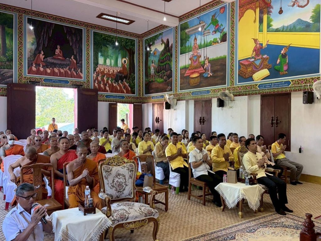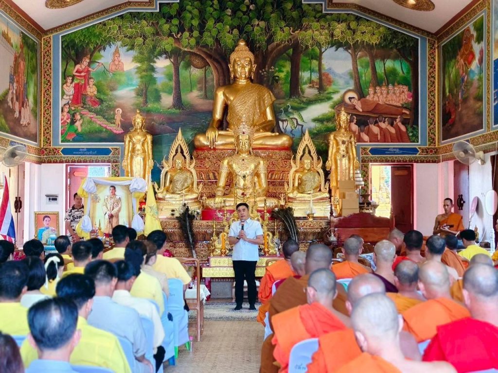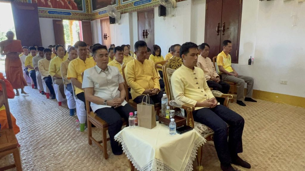 พ่อกำนันมานพ ยะทา กำนันตำบลแม่อ้อ/สารวัตรกำนัน/สารวัตรแพทย์/ผู้ใหญ่บ้าน/ผู้ช่วยฯ/ส.อบต.ร่วมพิธีเจริญพระพุทธมนต์และเจริญภาวนากิจกรรมเฉลิมพระเกียรติถวายพระบาทสมเด็จพระเจ้าอยู่หัว ฯ เพื่อถวายเป็นพระราชกุศล ฯ