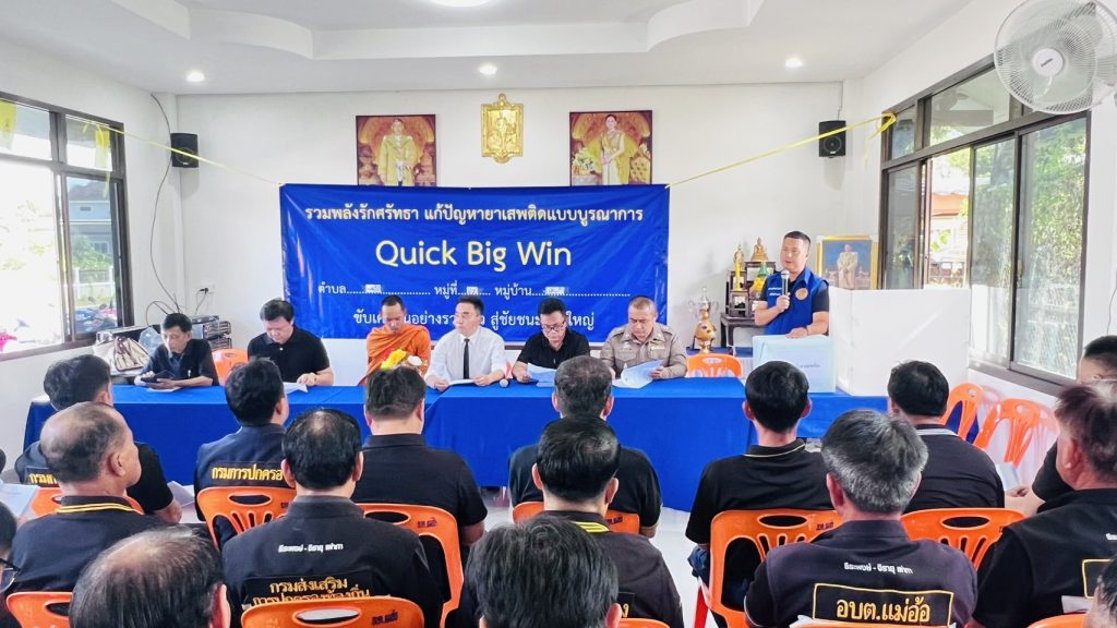 นายธีระพงษ์ เผ่ากา นายกองค์การบริหารส่วนตำบลแม่อ้อ พ่อกำนัน มานพ ยะทา กำนันตำบลแม่อ้อ ผู้ใหญ่บ้าน ผู้ช่วยผู้ใหญ่บ้าน สมาชิกสภาองค์การบริหารส่วนตำบลแม่อ้อ เจ้าหน้าที่สถานีตำรวจภูธรแม่อ้อ ผอ.รพสต.แม่อ้อ ร่วมทำบุญทอดผ้าป่ายาเสพติด เพื่อขับเคลื่อนนโยบายสำคัญเร่งด่วนของรัฐบาลในการในการแก้ไขปัญหายาเสพติดเพื่อคัดกรองผู้เสพ/ผู้ติดยาเสพติดและนำเข้าสู่กระบวนการบำบัดรักษาฟื้นฟูตลอดจนแนวทางการดำเนินงานด้านงบประมาณเพื่อให้องค์กรปกครองส่วนท้องถิ่นได้ใช้เป็นแนวทางในการปฏิบัติงานได้อย่างมีประสิทธิภาพรวมพลังรักศรัทธา แก้ปัญหายาเสพติดแบบบูรณาการ Quick Big Win ขับเคลื่อนอย่างรวดเร็ว สู่ชัยชนะที่ยิ่งใหญ่