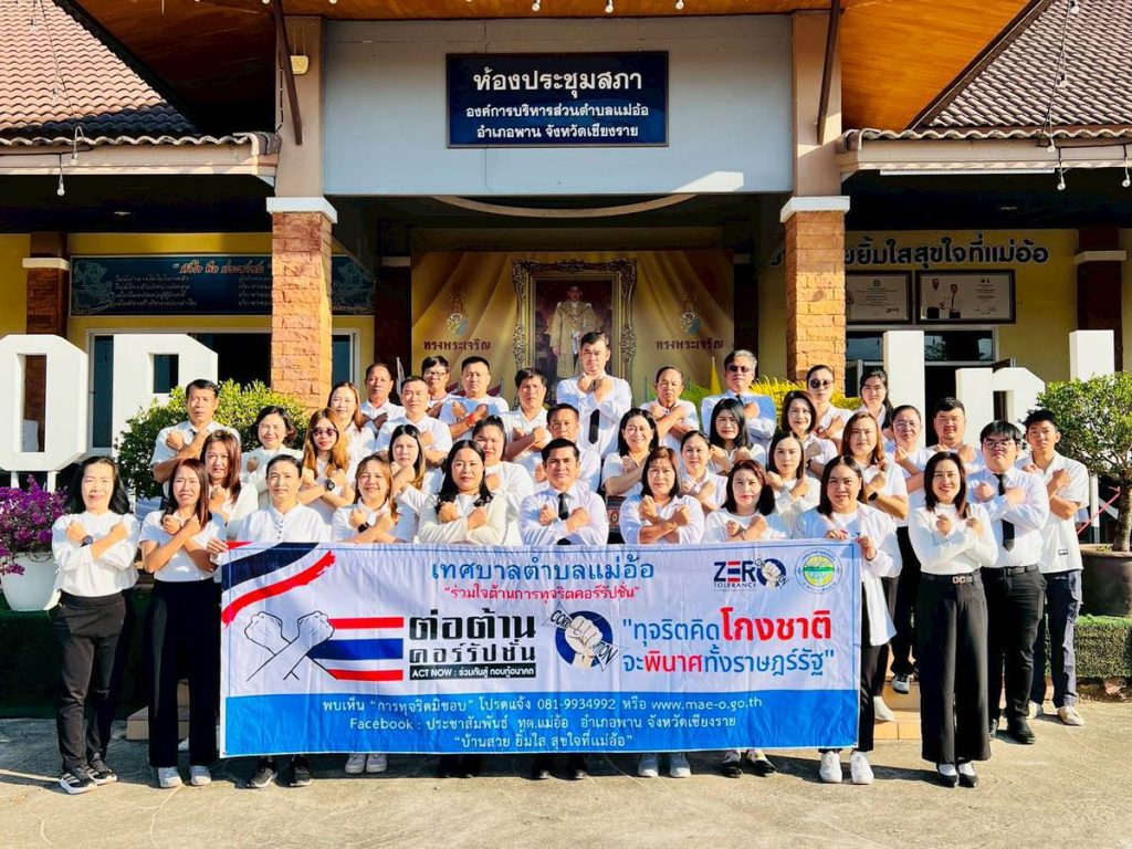 วันอังคารที่ 20 มกราคม 2569 เวลา 09.30 น. เทศบาลตำบลแม่อ้อ นำโดย นายสมบูรณ์ มาลารัตน์ ปลัดเทศบาลตำบล ปฏิบัติหน้าที่ นายกเทศมนตรีตำบลแม่อ้อ พร้อมด้วยพนักงาน เจ้าหน้าที่ ร่วมกิจกรรม แสดงเจตจำนงต่อต้านคอร์รัปชั่น โดยการ “ประกาศเจตจำนงต่อต้านการทุจริตของเทศบาลตำบลแม่อ้อ” เพื่อเผยแพร่ให้ทุกภาคส่วนไม่ทนต่อการทุจริต พร้อมทั้งเชิญชวนประชาชนร่วมกันตระหนักถึงความสำคัญของการปกป้องและรักษาผลประโยชน์ของประเทศจากการทุจริตคอรัปชั่นในทุกรูปแบบ