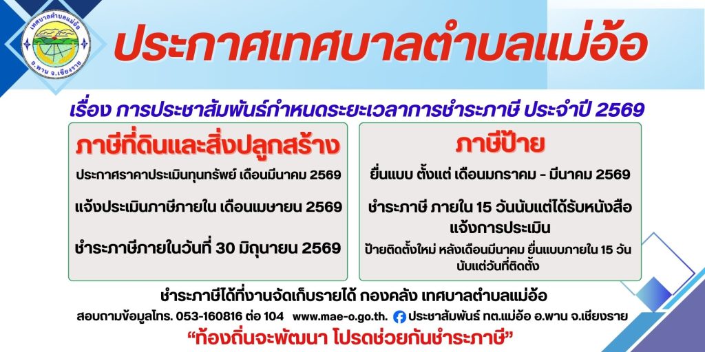 ประชาสัมพันธ์กำหนดระยะเวลาการชำระภาษี ประจำปี 2569