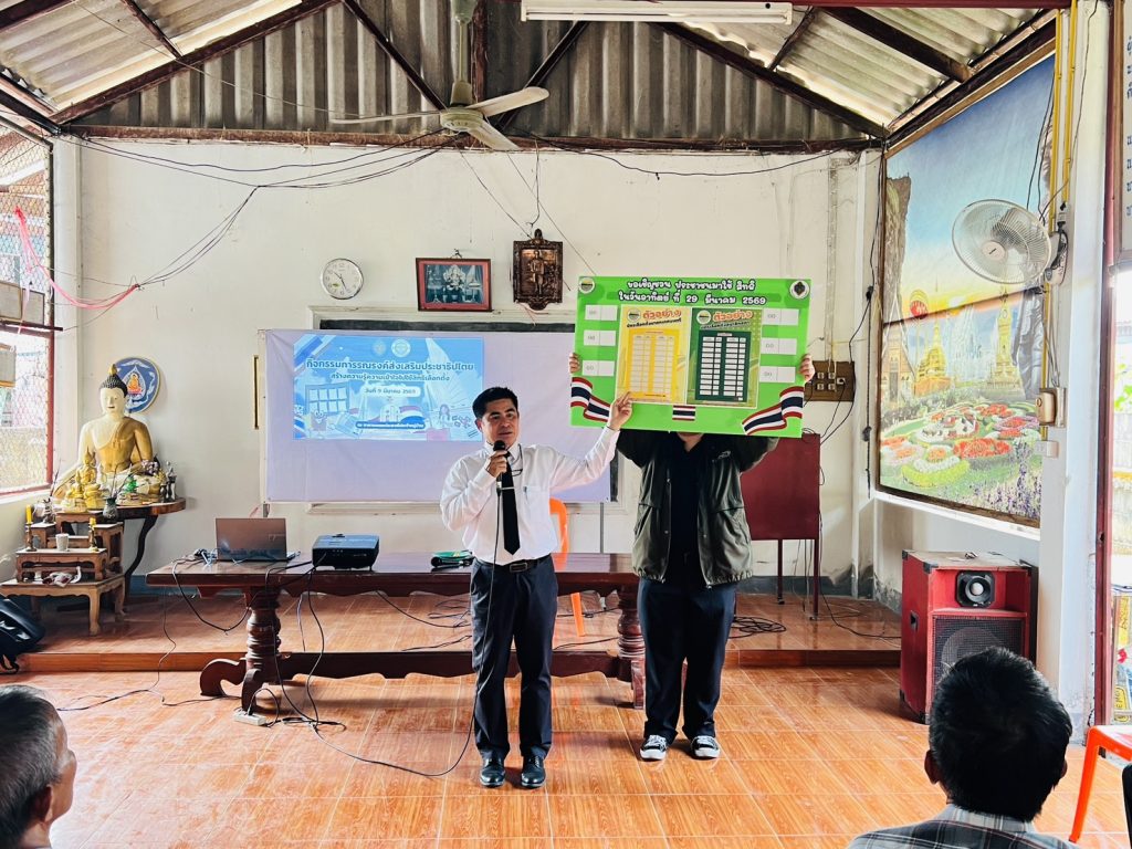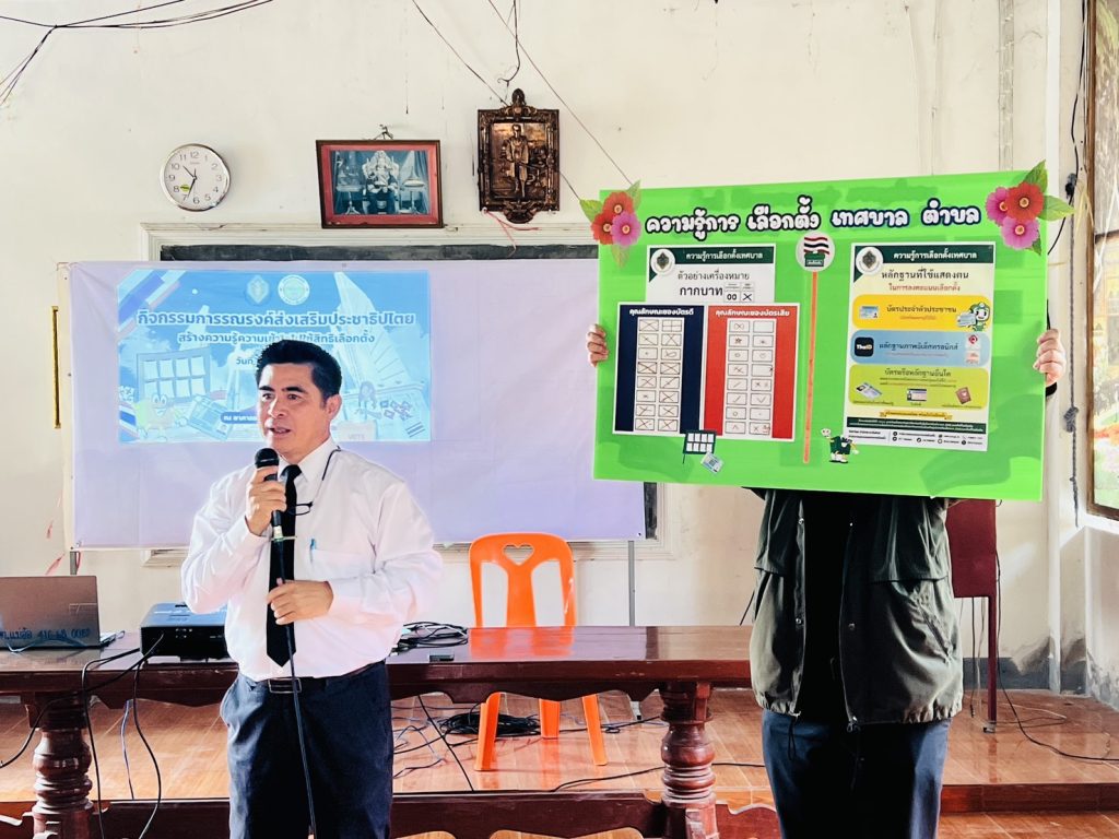 เพื่อสร้างความเข้าใจในการใช้สิทธิ์เลือกตั้งให้กับประชาชนในพื้นที่ตำบลแม่อ้อ หมู่ที่ 1,3,8,และ15